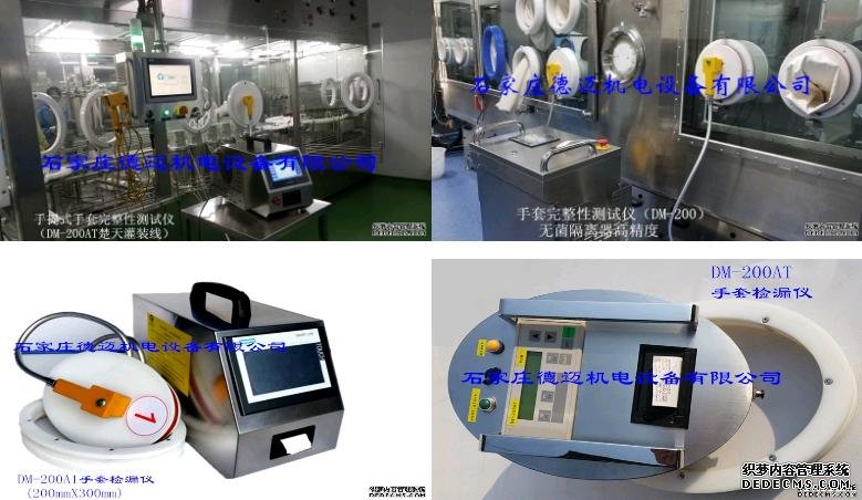 DM系列手套檢漏儀是專門檢測手套是否有泄漏的檢漏設(shè)備,主要應(yīng)用于無菌傳遞艙、負壓手套箱、無菌正壓隔離器、無菌試驗隔離器、C-RABS等使用手套的離線在線檢測,不需使用外接氣源,它由高低壓充氣泵、電氣與氣動控制組件、傳感器、觸摸屏、手套框鏈接單元、外箱體等幾部分組成。
